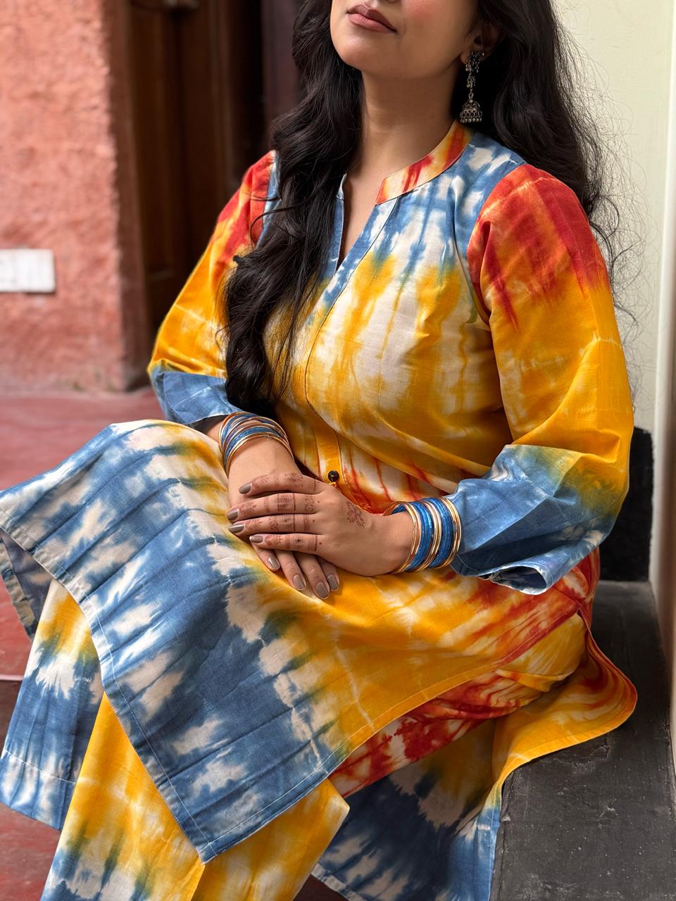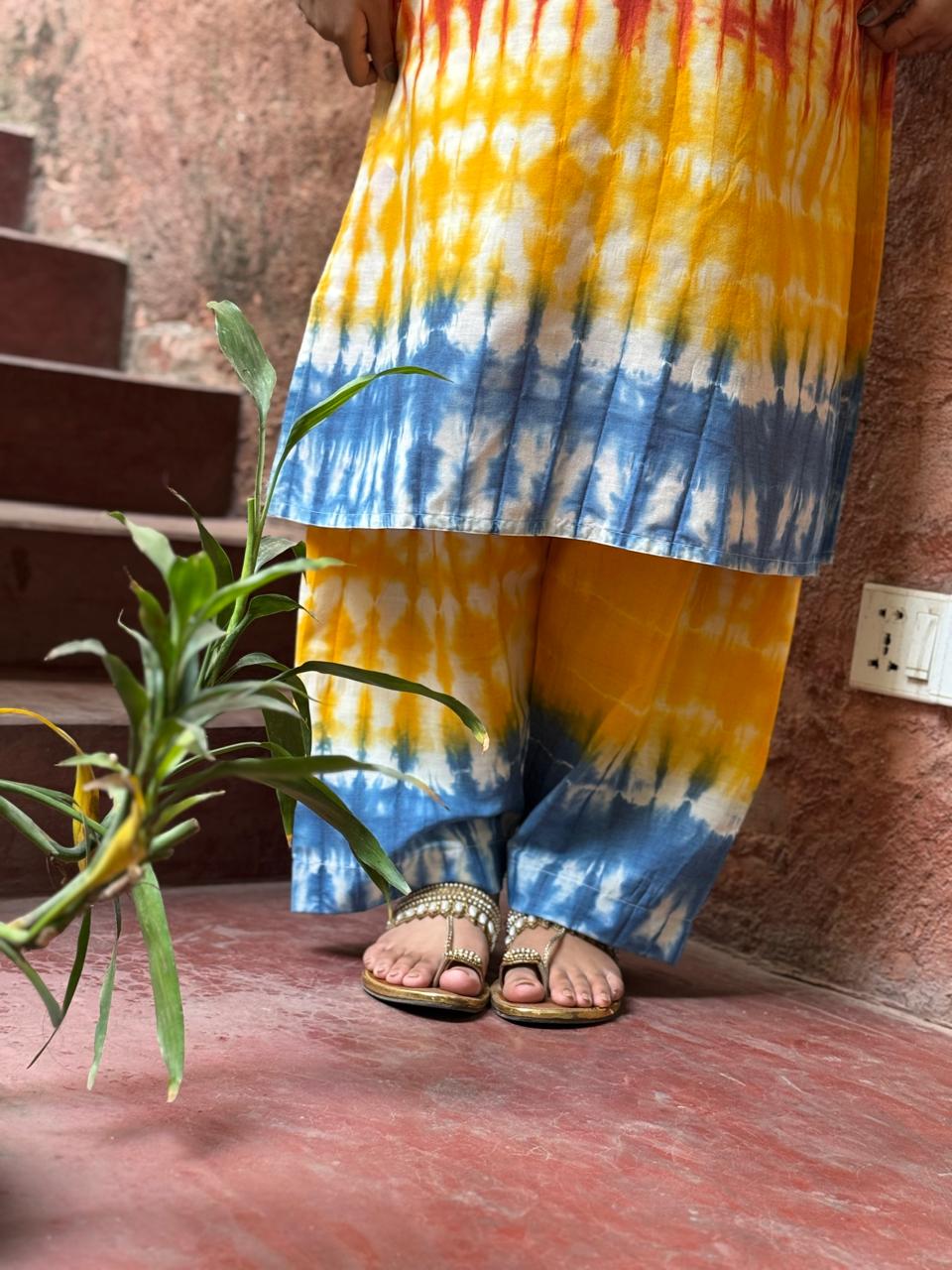 Kurti is made of Fusion Cotton with tie-dye. Pant is made of Fusion Cotton with tie-dye.