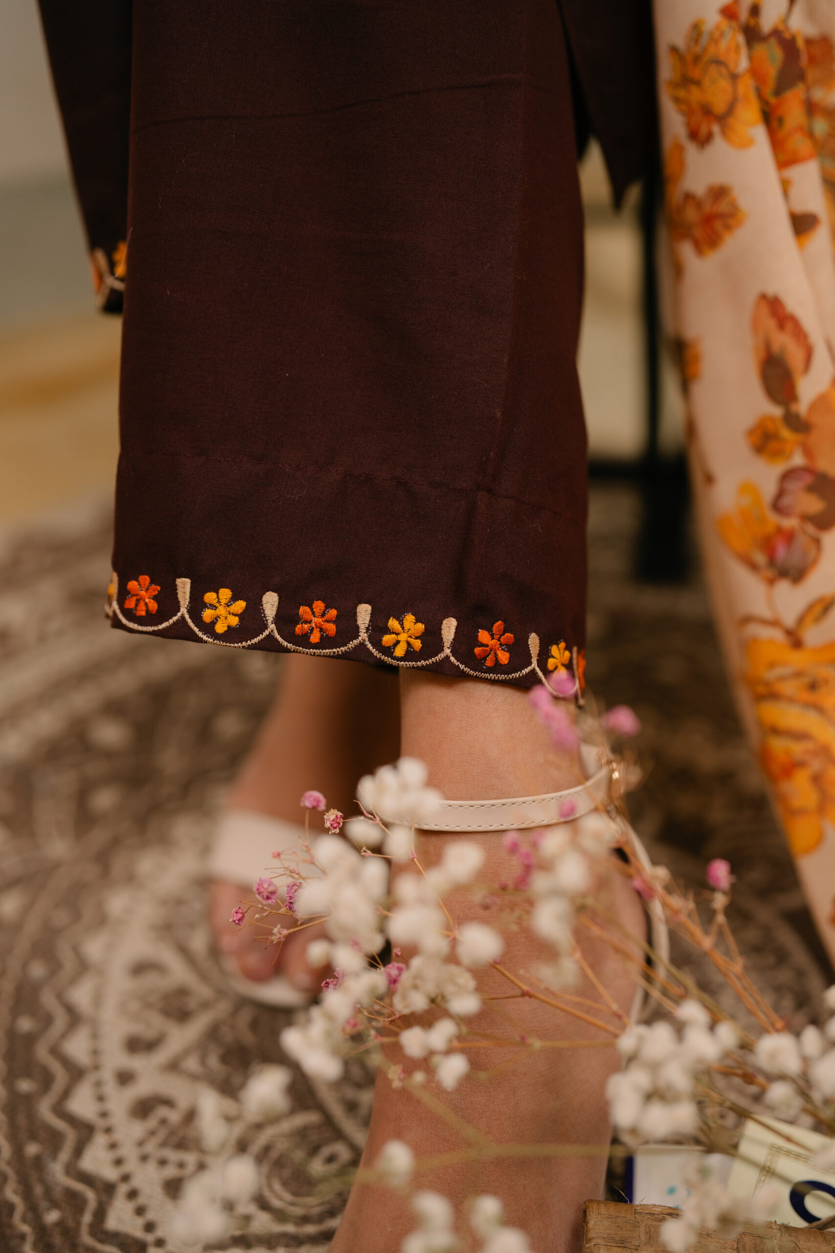 Kurti is made of Kashmiri cotton with embroidery work. Pant is made of Kashmiri cotton with embroidered work . The orna is made of silk cotton with digital print.