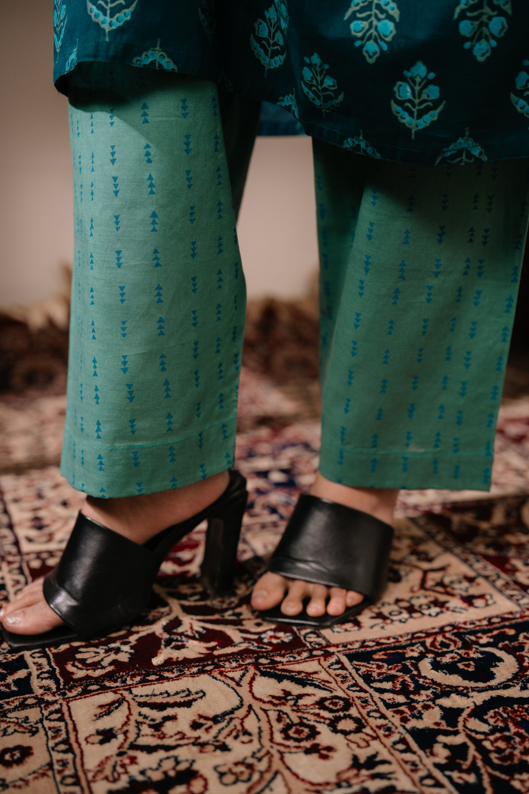 Kurti is made of Pure cotton with Hand Block. Pant is made of Pure cotton with Hand Block.