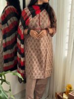 Kurti is made of Pure cotton with hand block. Pant is made of Pure cotton.
