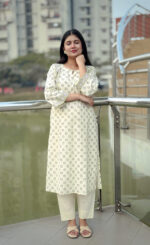 Kurti is made of Pure cotton with hand block. Pant is made of Pure cotton.